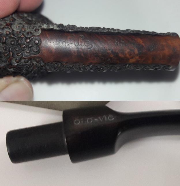 As described above, this dude has these rustication all over the stummel and over the round shank, save for a smooth portion on the bottom of the shank which bears all the identification marks of this pipe and the rim top which looks amazing. It is stamped on the left corner of the shank with “Old-Vic” in with old style curls. The end of the letter “c” curves back in a linear fashion and underlines up to the letter “d” in the name Old , before fading off gradually. Old-Vic is followed by “# 8523”. Just below the number and starting from the end of the letter “c” in Old-Vic, it is stamped as “CENTURY OLD” over “BRIAR ITALY”. Towards the right end of the shank and mid way, it bears the stamp “BURL GRAIN” in an arch over a very faint stamp which I could not make out. The vulcanite saddle stem is of high quality and is stamped on the left side of the saddle with “OLD-VIC”.