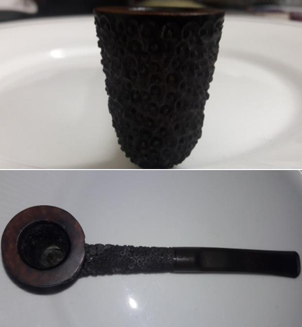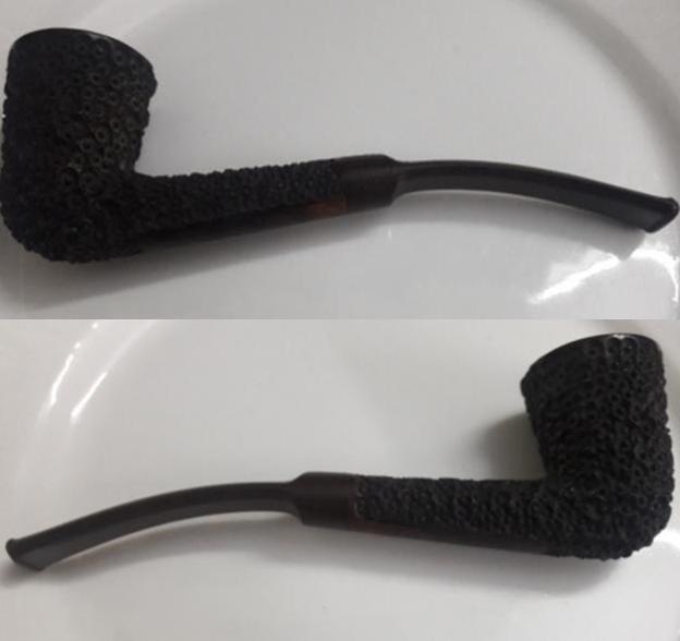 The next pipe that I decided to work on is a smallish beautiful bent Dublin shape with unique hexagonal giving the appearance of a honey collection cell in a beehive. These are definitely not hand crafted rustication as the perfect geometry, details and alignment of these tiny hexagons is difficult to achieve by hand. But, nevertheless, it is one handsome looking pipe!!!!