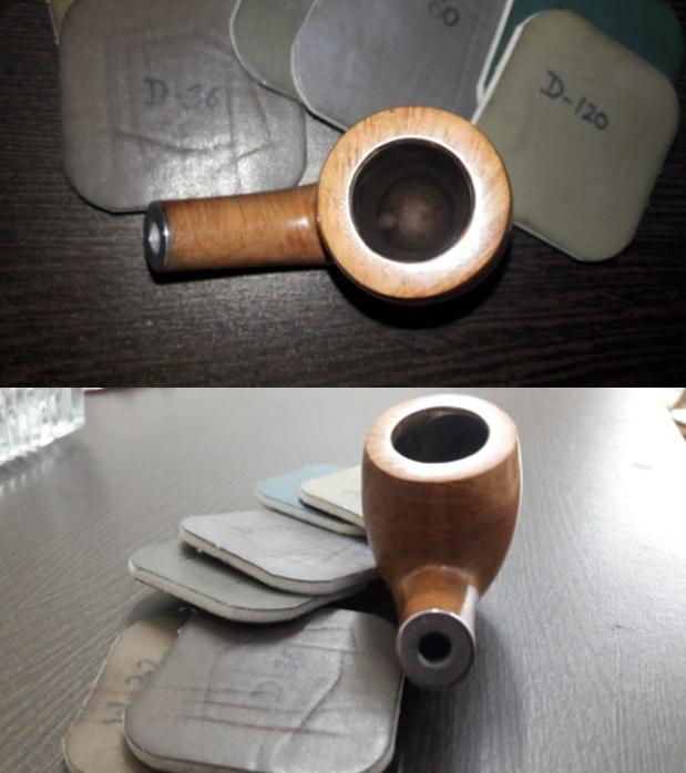 To address the superficial gouges in the chamber created by use of knife during reaming, I prepared a mixture of pipe ash and yogurt of putty consistency and applied a coat to the inner walls of the chamber. Once the coating had cured, I gently sand the walls with a 220 grit sand paper to a smooth and even surface. With this, the stummel is all completed.
