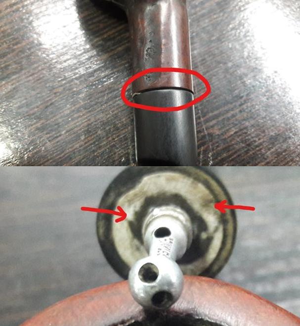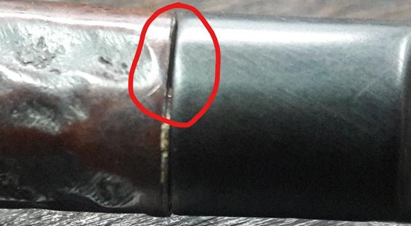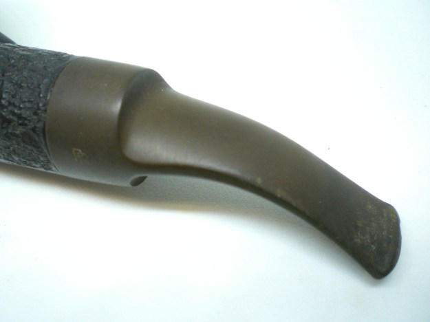 There is an aluminum spacer between the stem and the shank which breaks the monotony of the pipe. However, it is broken on the right side leaving an ugly gap between the shank and stem. The remaining portion of the aluminum spacer was crumbling and breaks merely to the touch. This needs to be addressed. There is a circular band of white tape or some such material at the end of the stinger where it meets the stem. This is something which is not correct and the reason for it having been placed needs to be checked.