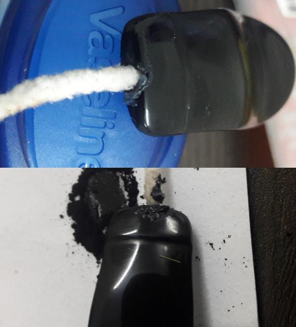 To address this chip, I firstly insert a regular pipe cleaner coated with Vaseline in to the air way. This prevents the charcoal and glue mix from dribbling in to the air way blocking it. I mix a small quantity of activated charcoal and CA superglue and spot apply it over the chipped surface. Once I have ensured that the complete surface is coated with the mix, I set it aside to cure overnight. The next evening, I file the filling with a needle file and match it to the surface of the stem. To further match the filling with the rest of the stem surface, I sand the fill with a 220 grit sand paper followed by micromesh polish pads. The stem is now nice and shiny again with a free flow of air through the airway.