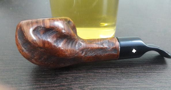 The short ¾ bent saddle stem has smooth upper and lower surfaces without any tooth chatter or bite marks. This is unlike any other pipe stem I have seen that had belonged to my grand old man. The four holed stinger is clean, however, the holes appear to be clogged. This was confirmed as air did not flow when I tried to blow through the stem. May be that has been the reason that this pipe was not as extensively used by him. The inlaid white clover leaf is clean and prominent with a tiny portion of the top of the leaf missing!! But it is so tiny chip that it is not immediately visible. The lips are worn out and may need to be reconstructed; again I am not sure about this as there is no damage as such.