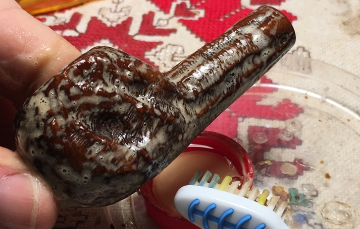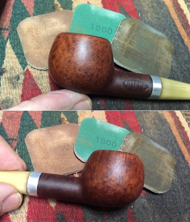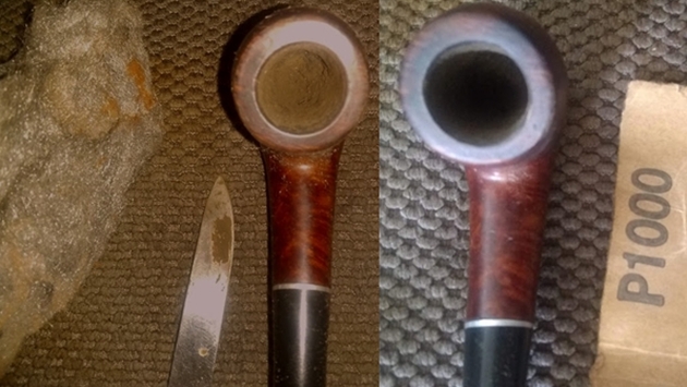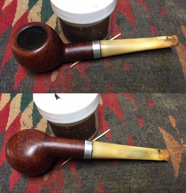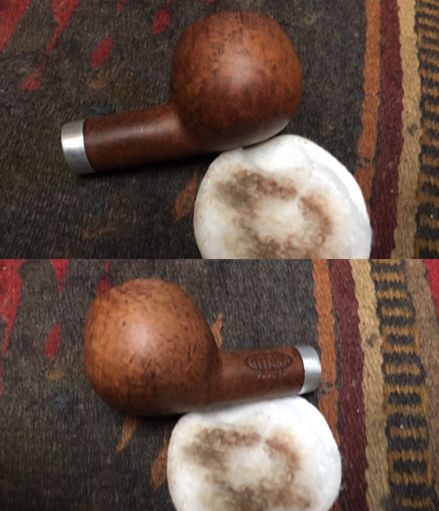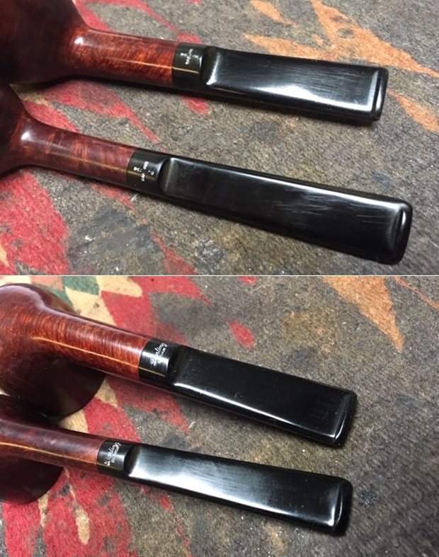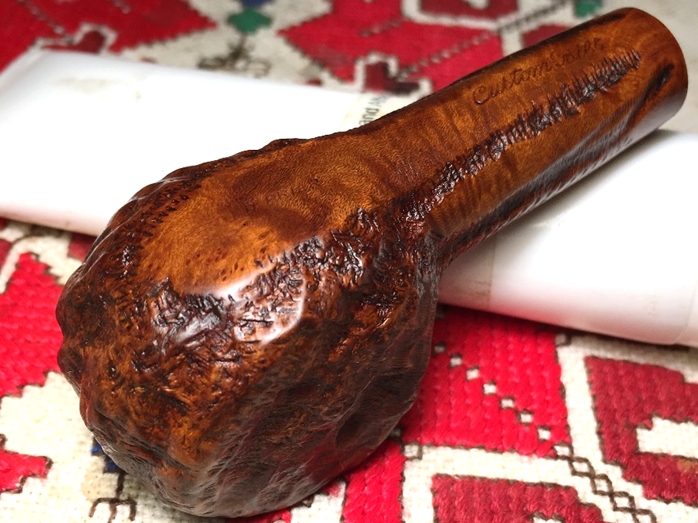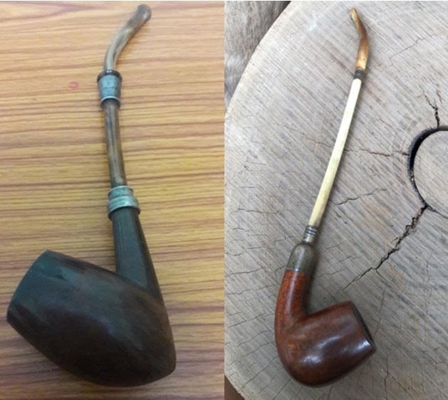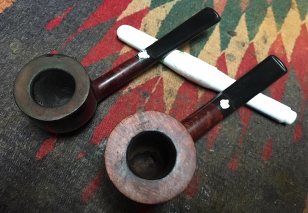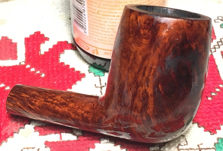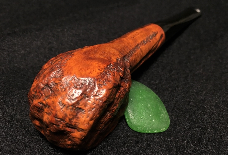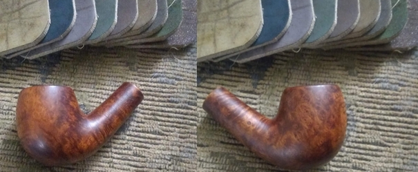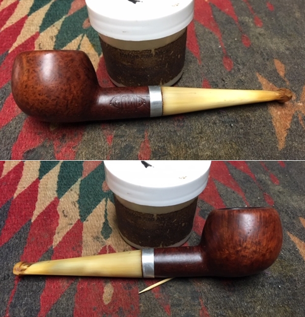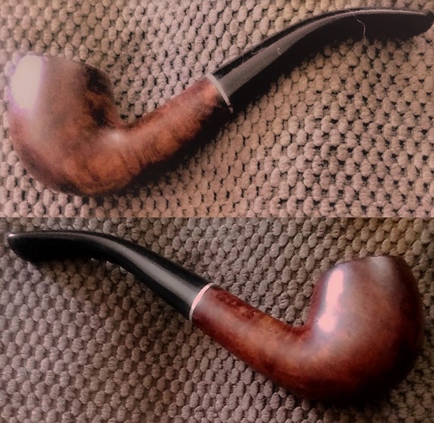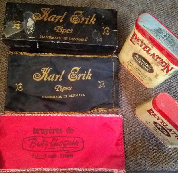 Finally, they talked about new pipes that they had both purchased and even pulled them out of their pockets and passed them to him for his assessment. The first one was a Ser Jacopo Picta Picasso in a natural finish with shining silver fitments. It was a real beauty. The grain and look of the pipe was stunning. Tom really liked the feel of it in his hand. The second pipe was a Castello Sea Rock finish bent billiard and it also felt really good in his hand. It made Tom miss his own pipes! But he gave each one a good look and commended the gents on their choices. They both had picked some good pipes. They nodded and one of them stuck his hand in his pocket and pulled out two tins of tobacco.