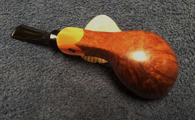 After rejoining stem and stummel, I then mount another cotton cloth wheel to the Dremel, maintaining 40% speed and apply several coats of carnauba wax. I finish the restoration by giving the entire pipe a rigorous hand buffing using a microfiber cloth to raise the shine further.