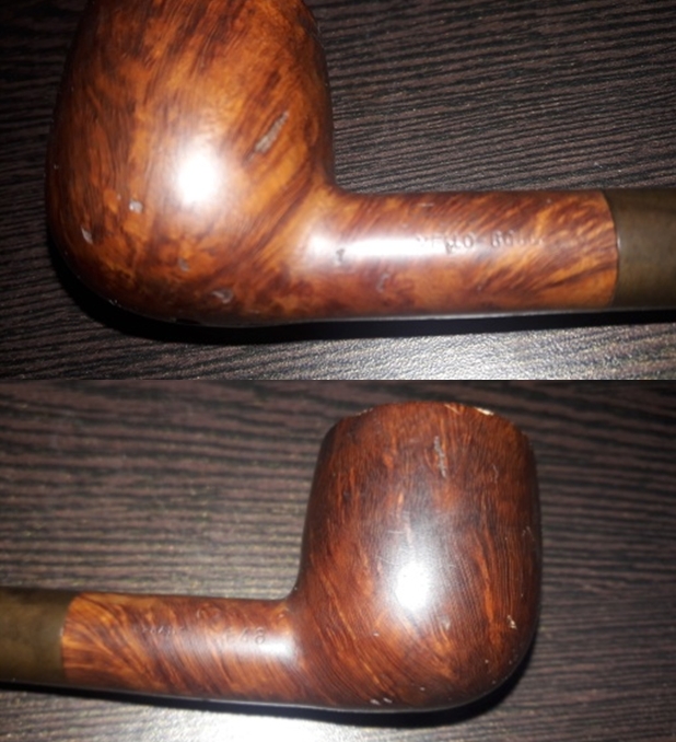 Before commencing the restoration, I decided to refresh my memory about Yello-Bole pipe brand and in particular, the Carburetor model, by visiting the blog written by Mr. Steve while restoring my first Yello-Bole. The first thing that struck me as odd was the difference in stampings seen on the pipe which is on my work table!!! The pipe currently on my work table is sans the stamp of KBB in clover leaf, U.S. patent number details, Cured with real honey, stem logo of a yellow circular ring and has shape number in three digits as against four on the one restored by Mr. Steve. However, the biggest and most significant difference which has me flummoxed was the stamping “MADE IN FRANCE”!!!!!!! No amount of research and surfing the internet provided me any clue as regards the origin and dating of this piece of briar.