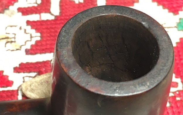 With the pipe cleaned, I look again at the stummel surface which almost appears to have been protected by the layer cocooning it. My task will be to preserve the patina of the briar’s finish by not introducing sanding that will be too invasive and remove the aged surface. I sent a note off to Steve of rebornpipes, just to make sure my plan received his concurrence before moving further with the Henley. My plan is to first repair the divot on the inside of the rim lip, shown at the 2 o’clock position on the first picture below. I could introduce an internal bevel to mask the divot, but I would rather salvage the rim real estate with this vintage pipe. I make a patch of briar dust and thick CA glue and mix a small amount of putty with it. After wiping the area with alcohol to clean it, I mix the CA glue and briar dust until it reaches the viscosity of molasses and apply the putty to the divot using a toothpick. It takes very little. I put the stummel aside to allow the patch to cure.