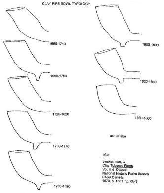 article (at least to me) that a curator would appreciate. The Colonial Williamsburg Foundation’s (Virginia, USA) website, History.org, published an article by Ivor Noël Hume entitled, “Hunting for a Little Ladle – Tobacco Pipes” (link). The author describes how archeologist can learn much about different periods of Colonial America in Williamsburg, Virginia’s, history through the recovery of thousands of clay pipe fragments! As we’ve already mentioned, hygienic concern is the predominant theory. An excerpt from the author is enlightening: