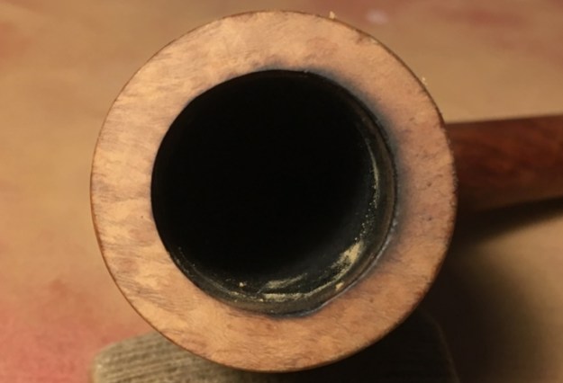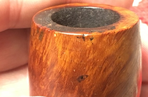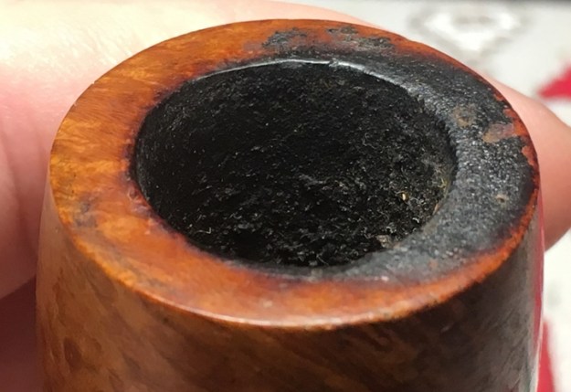 Looking at the rim, there are some dents on the external lip and some significant lava flow over the backside of the rim. The conical chamber has moderate cake build up which I will remove to provide the briar a fresh start.