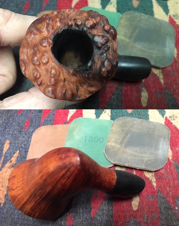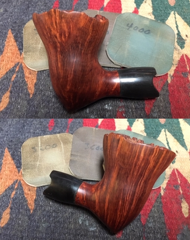 When I finished with the rim edge and top clean up I went back to the micromesh sanding pads. I polished the horn shank extension and the bowl with 6000-12000 grit pads and wiped it down with a damp cloth after each pad. I rubbed down the shank extension with Obsidian Oil when I had finished and set it aside to dry.