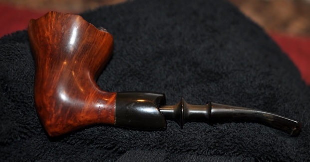I polished the freshly sanded horn extension and the smooth briar with 2400-12000 grit micromesh sanding pads – wet sanding with 1500-2400 grit pads and dry sanding with 3200-4000 grit pads. I wiped the rim top down with a damp cloth after each pad. I found that with each successive grit of micromesh the striations in the horn shank and the grain on the bowl sides stood out more and gave a shine to the pipe. I liked what I saw when I looked at it.