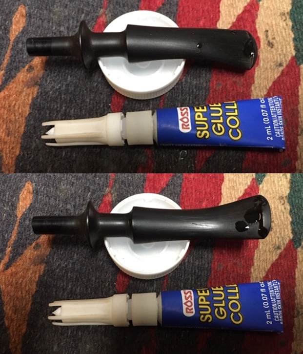 With the bowl finished I set it aside and turned my attention to the stem. I filled in the deep tooth marks and dents on the both the top and underside of the stem and on the edges of the button on both sides with clear super glue. When the repairs had cured I used a needle file to flatten the repaired spots in preparation for sanding.