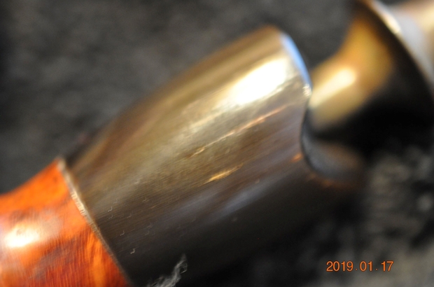 Jeff took photos of the stamping on the underside of the shank. It reads as noted above and is clear and legible. The horn shank extension was worn and there was grime in the junction of the horn and the briar.