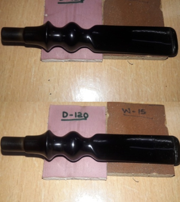 I would like to remind the readers that all these days, layering of the stem button with charcoal and superglue had been in progress and now I was satisfied with the thickness of the layering. Using a needle file, I sand the filling to match the surface of the stem. However, disaster struck within a few moments of filing!! The filling broke away from the intact portion of the button. It was, in all probability, due to higher content ratio of activated charcoal in the mix (though I am not convinced entirely) or could be lack of adequate curing (most likely). The bottom line remains that I had to repeat the entire layering process on the button end again…..frustrating to say the least, thus NO PICTURES OF THE DISASTER TAKEN!!
