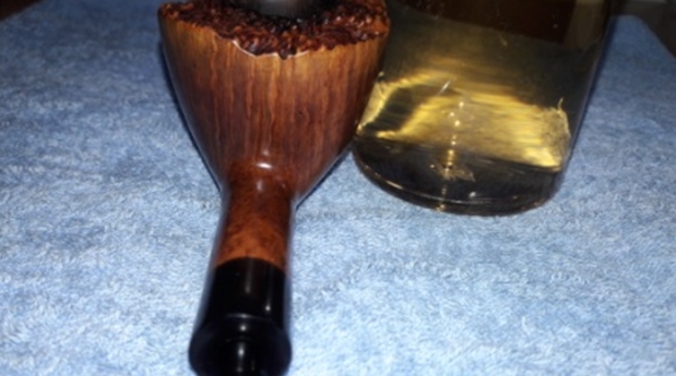 To completely eliminate the smell, I decided to resort to alcohol bath. I packed the chamber, just below the rim, with cotton balls. I stretched a cotton ball into a thick wick, tapering at one end, and inserted it in to the shank and pushed it as far inside as I could along with a regular pipe cleaner. I topped the bowl with isopropyl alcohol using a syringe. I know that it is generally a practice to use Kosher salt for this procedure, but since Kosher salt is not easily available here, and when available, it’s very expensive, I use cotton balls. I find that cotton balls work just fine in drawing out all the tars and smells from the mortise and the bowl. I topped the bowl with alcohol again after 30 minutes when the alcohol level had gone down and set it aside overnight for the cotton and alcohol to do its intended job. The next day, the cotton and alcohol had fulfilled its intended task. The pipe cleaner had also drawn out all the stain from within the mortise. I removed the cotton balls and ran pipe cleaners through the mortise to clean out all the loosened tars and gunk. The internals of the stummel is now clean and fresh and the ghost smells are history too.
