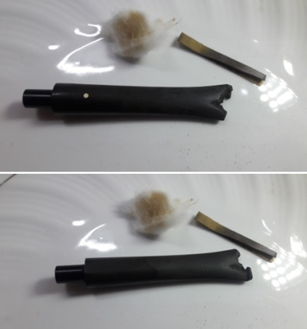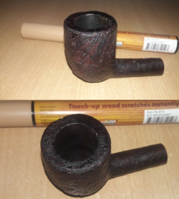 I set the bowl aside and turned my attention to the stem. I filled in the deep tooth marks on both sides with black super glue. It takes a while to cure so I set it aside and worked on another pipe while it hardened.