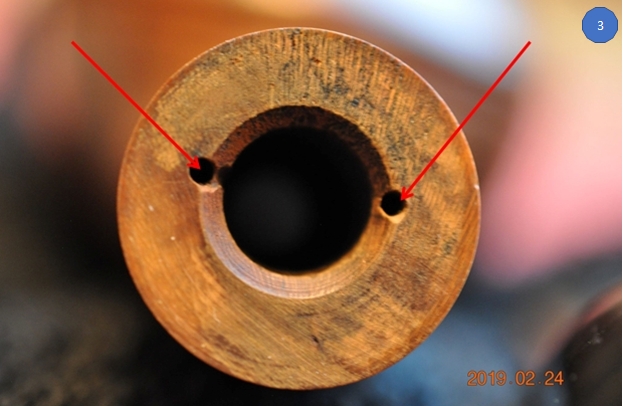 Every so often my brother and I come across very unique pipes that are worth restoring just for the thing that makes them particularly notable. Each pipe that falls into this category has its own uniqueness that sets them apart as different. These unique pipes come to us from a large variety of different sources and the one I am working on now came to me from a reader of rebornpipes. Christine contacted me to see if I would be interested in purchasing her Grandfather’s pipes and restoring them. She was particularly interested in seeing what I could do with a Vottis pipe that he had. She sent me photos of the lot and we struck a deal. Over the years I have worked on several Vottis pipes coming from different sources. But this Vottis pipe from Albany, New York is not like anything I have ever seen before. I am including some photos to show the system. There is an air hole (not big) on each side of the shank near the bowl (Photos 1 and 2). These run parallel to the airway and come out on either side of the mortise (Photo 3). The stem is drilled with the same two small channels that run the length and out the button on either side of the slot (Photos 4 and 5). The red arrows in each photo point to the airways that I am referring to throughout the blog.