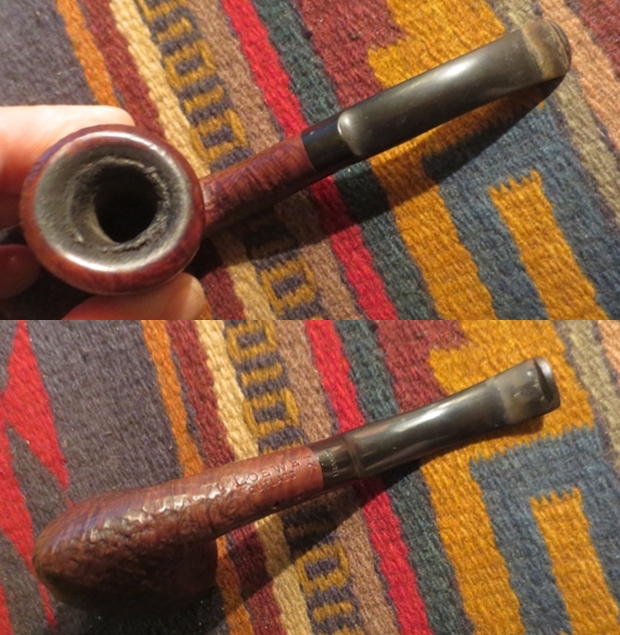 Jeff cleaned up the pipe for me. He reamed the bowl with a PipNet pipe reamer and cleaned it up with a Savinelli Fitsall Pipe Knife. He scrubbed the exterior with Murphy’s Oil Soap and a tooth brush to clean off the grime in the sandblast finish and the heavy overflow of lava on the smooth rim top. He cleaned up the internals of the shank, mortise and stem with pipe cleaners, cotton swabs and alcohol to remove all of the oils and tars in the pipe. When it came back to Vancouver it a cleaner and better looking pipe. I took photos of it before I started the restoration.