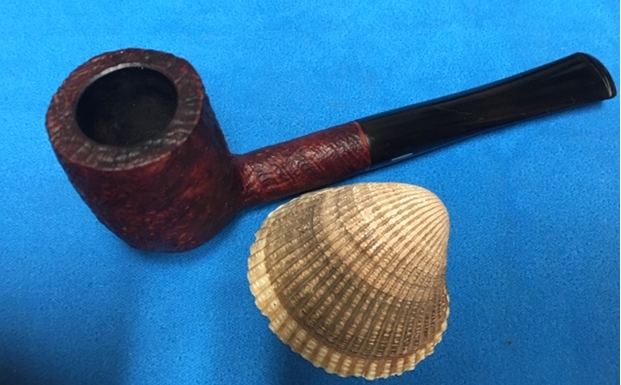Jeff took photos of the stamping to capture the clarity of it even under the grime. The brand and the shape number are very readable. He also included a photo of the brass bar logo on the stem.