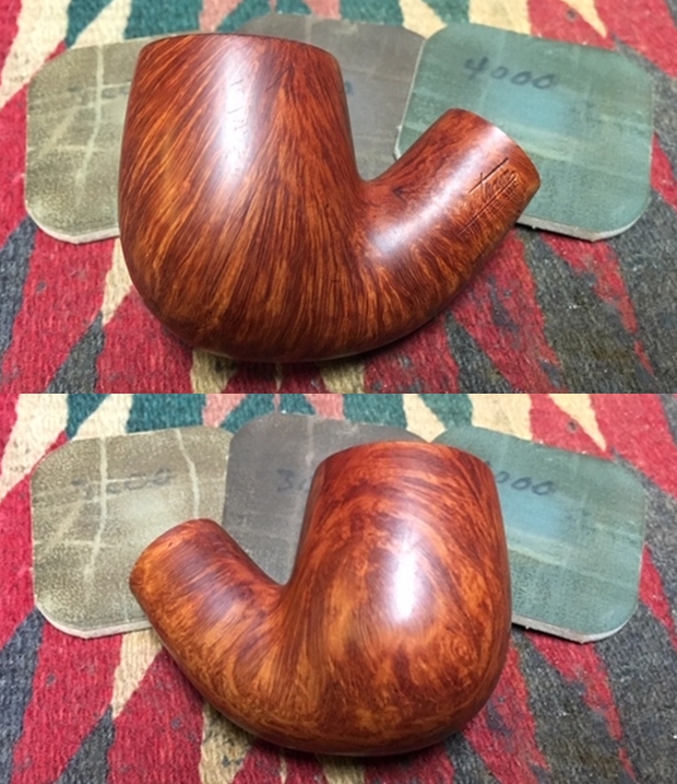 I rub a small quantity of “Before and After Restoration Balm” in to briar and let it rest for a few minutes. The balm almost immediately works its magic and the briar now has a nice vibrant appearance. I further buff it with a horse hair shoe brush. The pipe now looks lovely with beautiful grains showing off their beauty in all glory!!