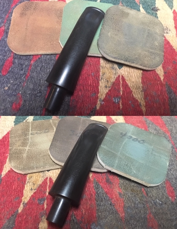 I polished the stem with micromesh sanding pads – wetsanding it with 1500-2400 grit pads and dry sanding it with 3200-12000 grit pads. I wiped the stem down with Obsidian Oil after each pad. I polished it with Before & After Pipe Polish – both Fine and Extra Fine and gave it a final coat of Obsidian Oil and set it aside to dry.