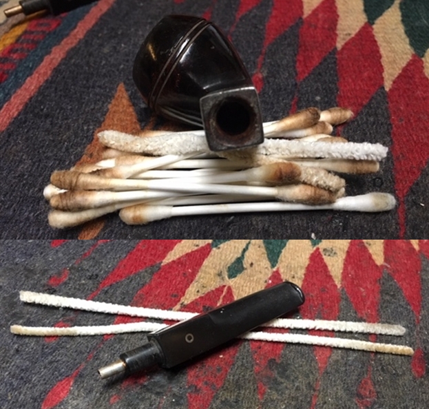 I cleaned the internals of the pipe with pipe cleaners, cotton swabs and alcohol to remove the debris inside the mortise and the airway into the bowl and the stem. I scraped the mortise walls with a dental spatula to remove the tars that had hardened on the walls.