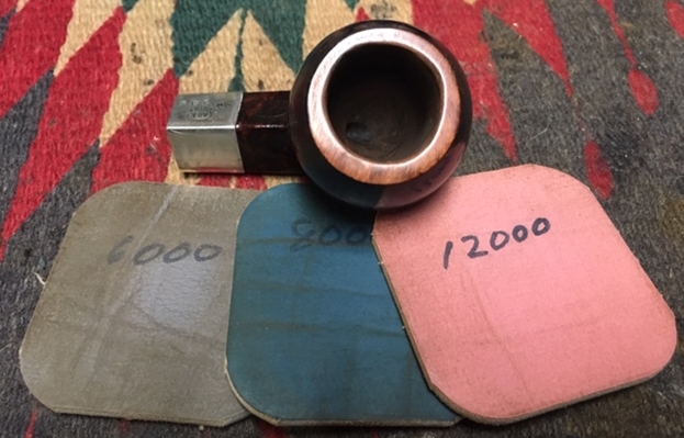 I polished the rim top with micromesh sanding pads – wetsanding with 1500-12000 grit pads as suggested by Paresh on my recent trip to Pune, India. I have to say that is working very well. I wanted to polish out the scratches so that I could work on matching the stain on the rest of the pipe and finish that portion of the restoration.