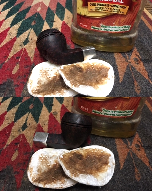 Armed with this information I turned to work on the pipe. I started by cleaning up the silver with silver polish to remove the tarnish from the band. I rubbed the material on the band and polished it with a cotton pad to remove both the tarnish and polish the pipe.