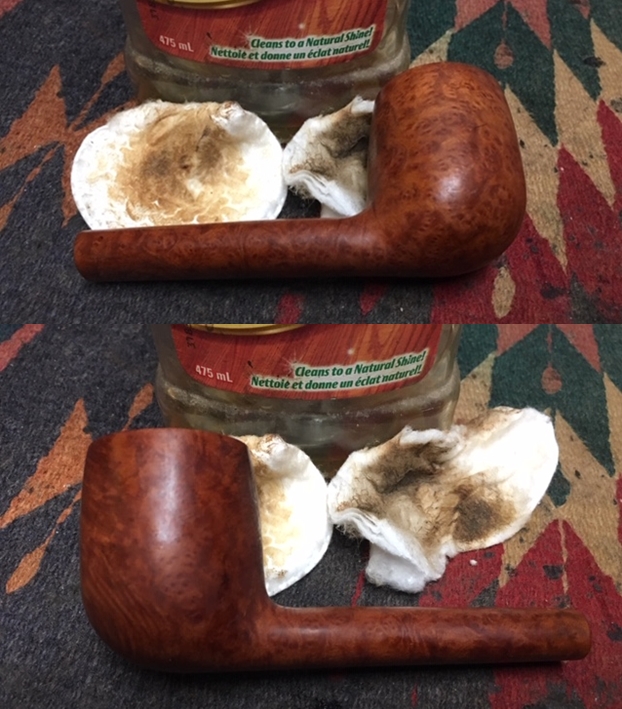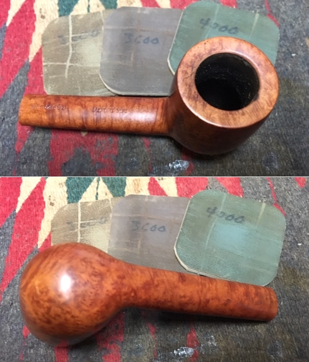 I rubbed down the pipe with the Conservationist’s Wax and set it aside to dry for a few moments while I cleaned up the sanding pads. Once it was dry I hand buffed it with a soft cotton cloth to give it an initial shine and to highlight any areas that had scratches that I needed to sand some more before buffing it on the buffer (Photo 59).