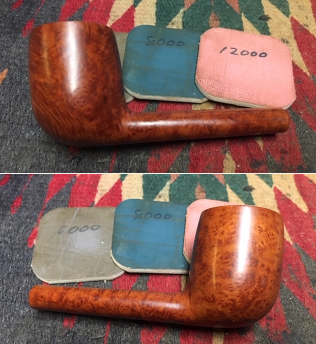 After hand buffing, I took the pipe to the buffing wheel and buffed it with White Diamond. The next series of photos shows the pipe after buffing with White Diamond (Photos 60 –65).