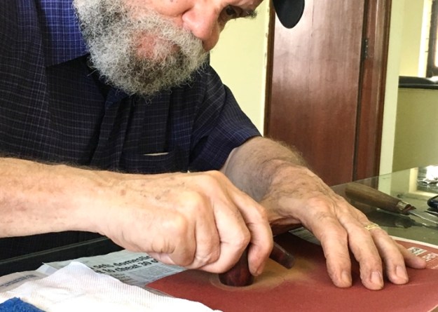 The emergence of the beauty of this aged patina was amazing to watch as Steve teased it out by dry sanding with pads 6000 to 12000.