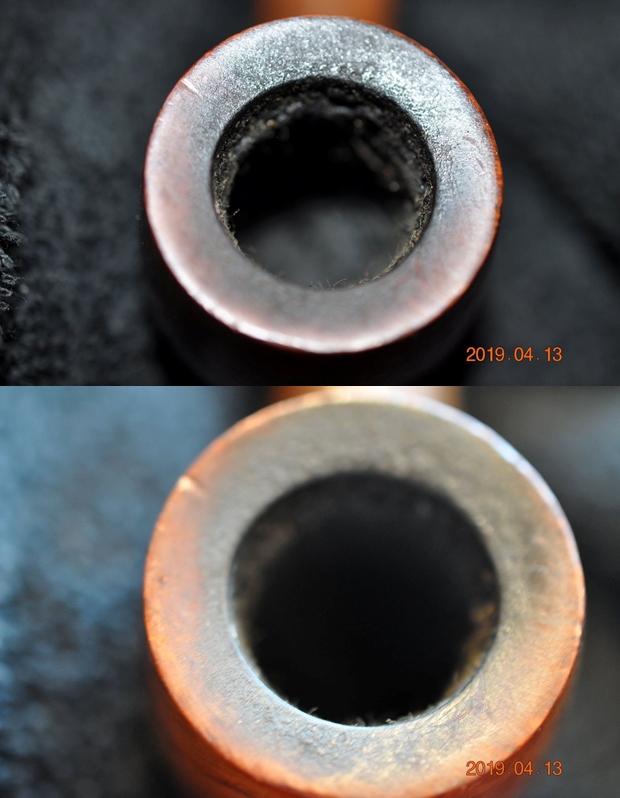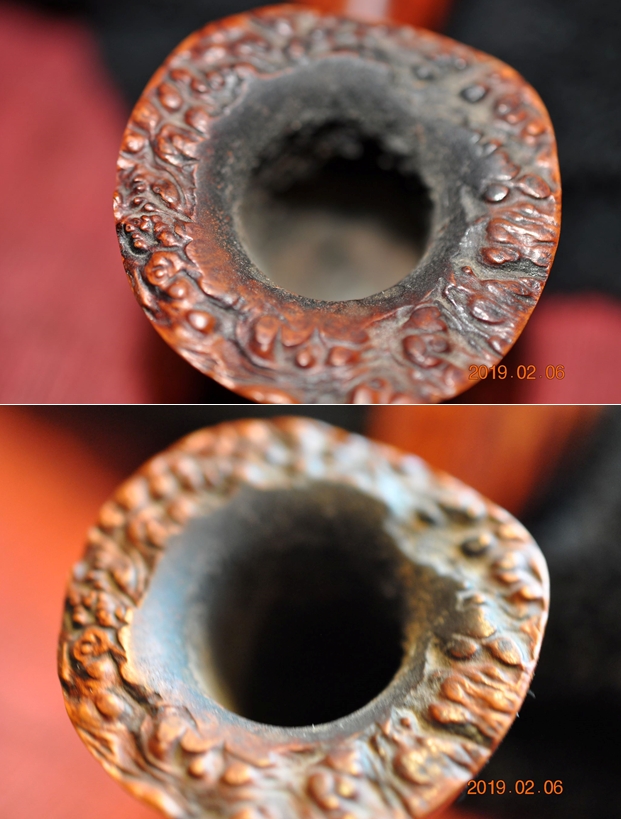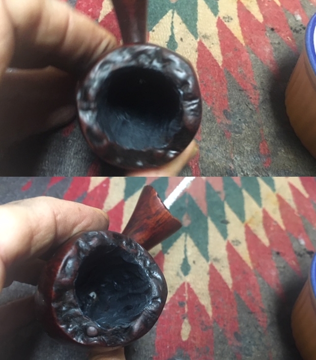Jeff took close-up photos of the bowl and rim to capture the condition of the pipe when it arrived. The rim top had a thick coat of lava and the bowl had a thick cake. You can see from the photos why it was hard to tell the condition of the inner edge of the rim.