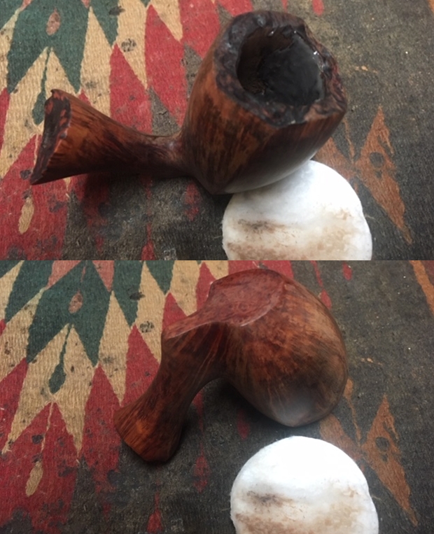 The picture of the bowl sides and the heel give a clear picture of the grain around the heel and the sides of the bowl. The bowl looks very good – maybe a small fill on the bottom right side of the bowl but cleaning will tell for sure. I am looking forward to seeing what is under all of the grime. The grain looks very interesting in these pictures and should look amazing when cleaned and polished.