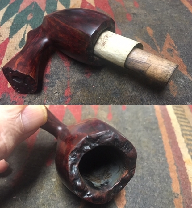 With each of the blogs that I have written on the Bertrams that I have worked on I have included the following information. If you have read it in past blogs, you can skip over it. If you have not, I have included the link to Bertram history and information. I would recommend that if you don’t know much about them take some time to read the background. I include a link to the write up on Pipedia (http://pipedia.org/wiki/Bertram). Bertram pipes were based out of Washington DC. They were popular among famous politicians and celebrities of the time. They made many products for them from FDR’s cigarette holders to Joseph Stalin’s favorite pipe. They were considered some of the best America had to offer till they finally closed their doors in the 70s. Bertram graded their pipes by 10s and sometimes with a 5 added (15, 25, 55 etc.), the higher the grade the better. Above 60s are uncommon and 80-90s are quite rare. I have worked on one 120 Grade billiard. I have several blogs that I have written on rebornpipes that give some history and background to Bertram pipes. (https://rebornpipes.com/2015/06/16/an-easy-restoration-of-a-bertram-grade-60-217-poker/).