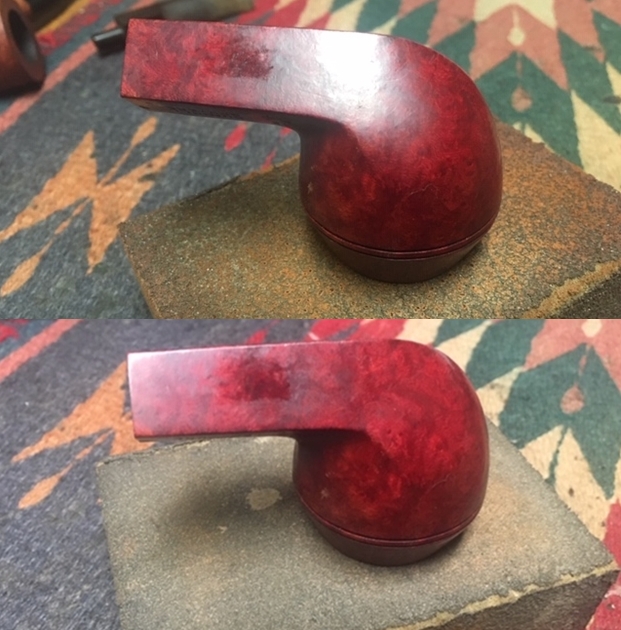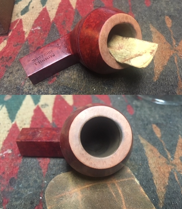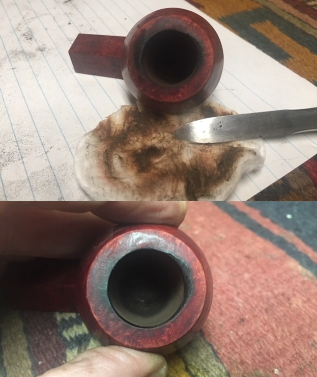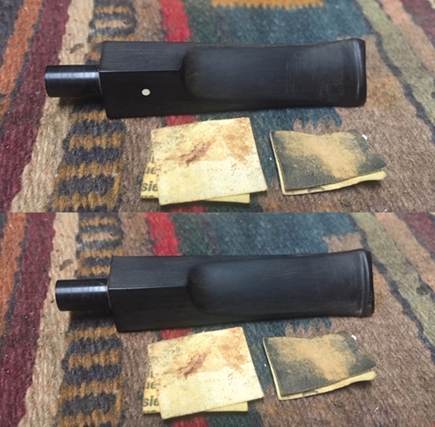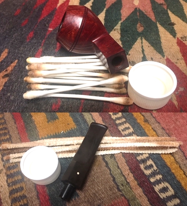 I decided to let the polishing wait and turned my attention to the internals of the pipe. I cleaned out the shank and airway to the bowl and in the stem with 99% isopropyl alcohol, cotton swabs and pipe cleaners. I cleaned both until the cleaners came out white. It was a dirty pipe.