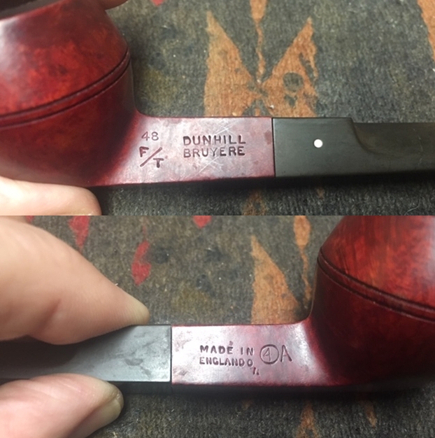 I took a photo of the stamping on both sides of the shank. The stamping was very sharp and readable and confirms the information above. There is a little sloppiness to the second number stamp following the D in England. Under the lens it looks clearly like a 0 followed by a 1 that is dropped down below. In the photo there is some sloppiness to the stamp. The one has a slant and some nicks before and after so it looks almost like a 7 but I think it is a 1.