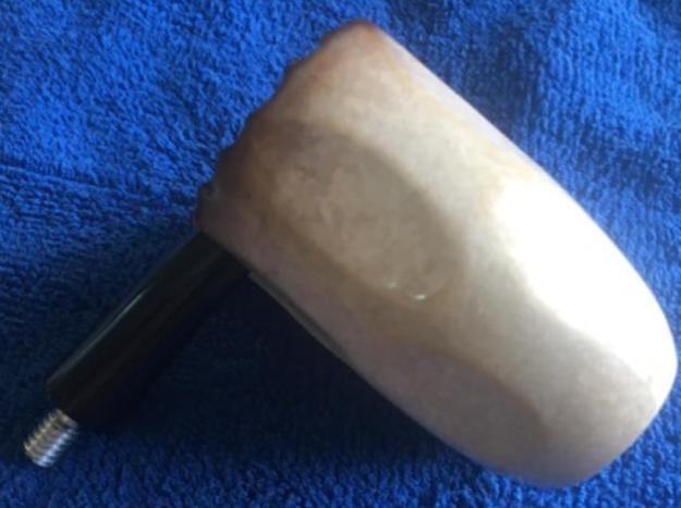 I took over from where Jeff had left and began polishing the stummel with micromesh pads, dry sanding the entire stummel with 1500 to 12000 grit pads. The stummel now has a nice smooth and shiny surface. I wiped the stummel and each pad with a soft slightly moist cloth to remove the meerschaum dust from the surface. Once I was done with the micromesh pads, Steve decided to blacken the rim top surface using a permanent black marker. Since the burning tobacco would not be in contact with the rim surface, this should have no harmful effect while the pipe is being smoked. This darkening of the rim top surface transformed the complete appearance of this Oom Paul as can be seen in the last picture.