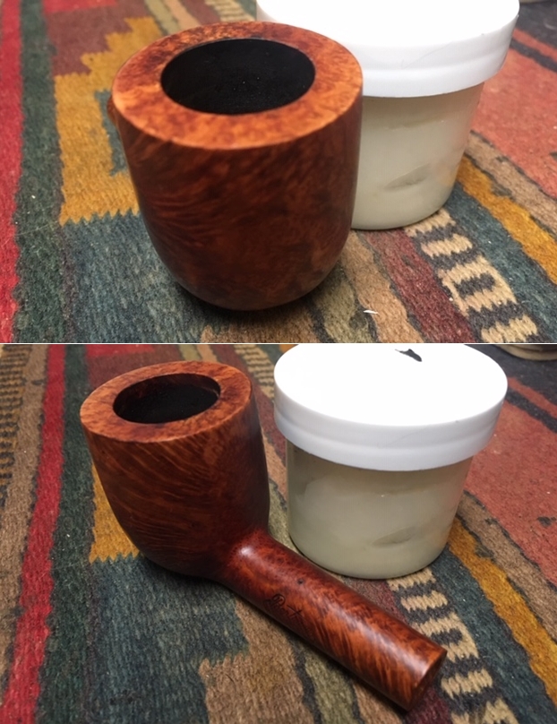 I worked some Before & After Restoration Balm into finish of the briar with my fingertips to clean, enliven and protect it. I let the balm sit for a little while and then buffed with a cotton cloth to raise the shine. The Restoration Balm really makes the grain stands out beautifully. If you have not tried some why not give it a try.