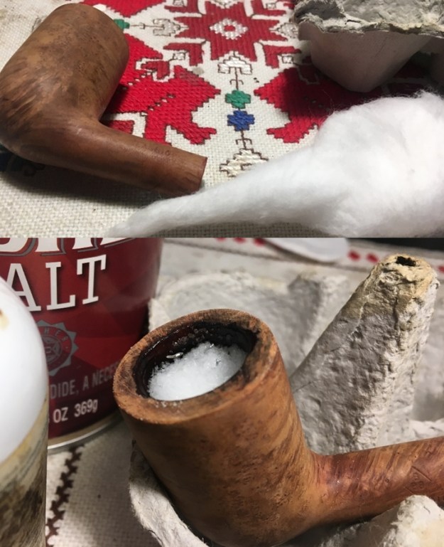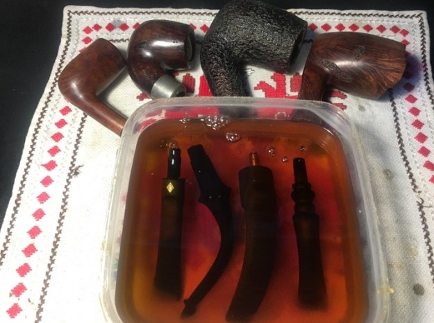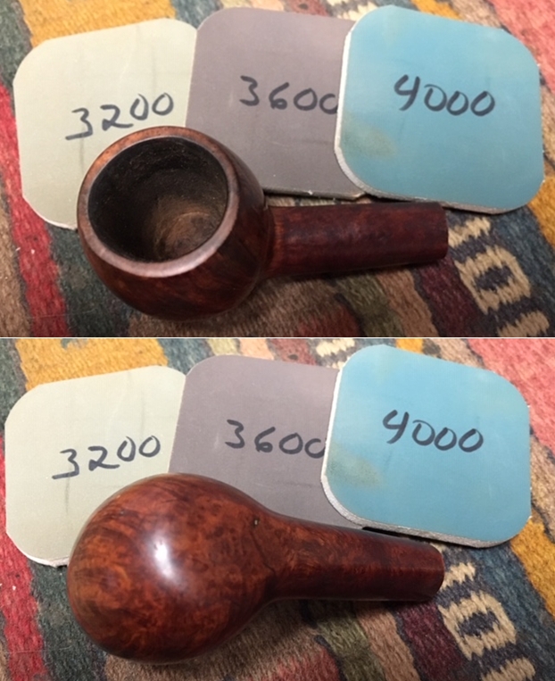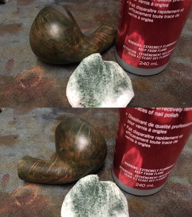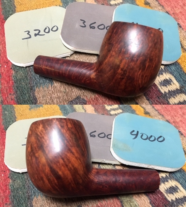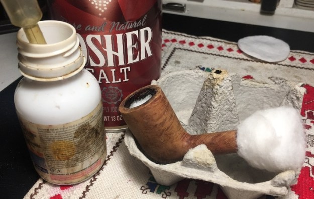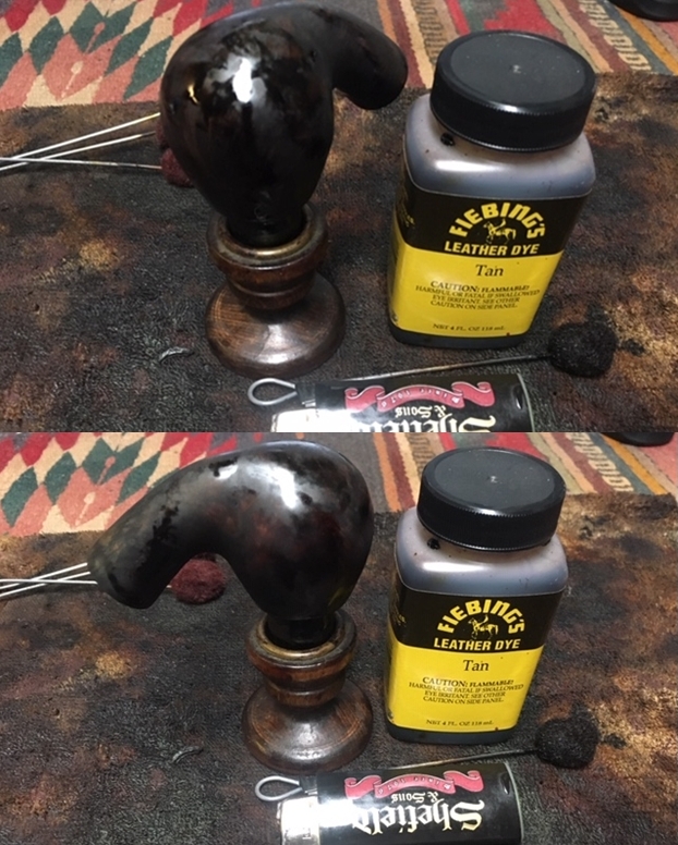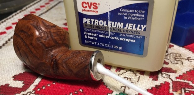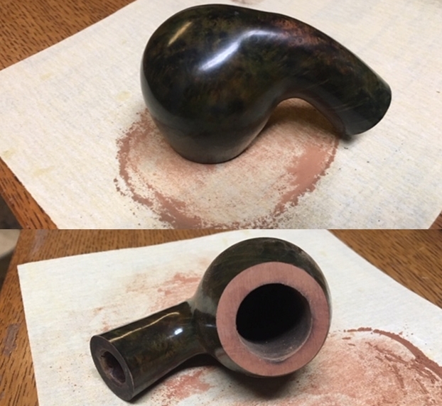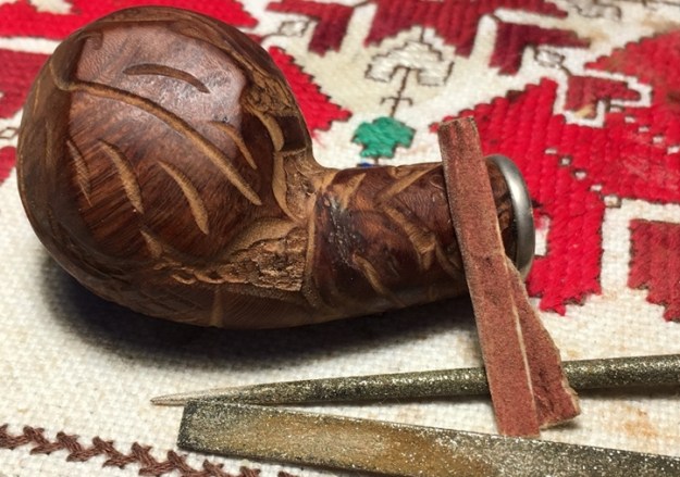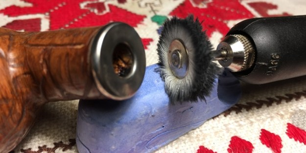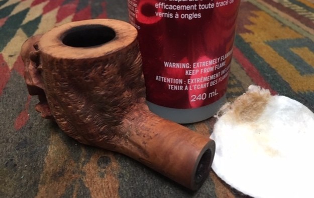 The bowl had the lion’s share of the restoration work needed on this pipe. So with that virtually completed other than the final polishing I set it aside and turned my attention to the stems. I painted the bone push tenon with clear fingernail polish to build it up and tighten the fit in the shank.