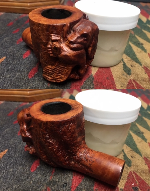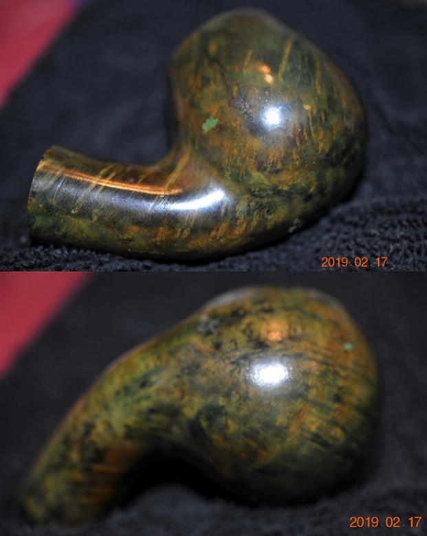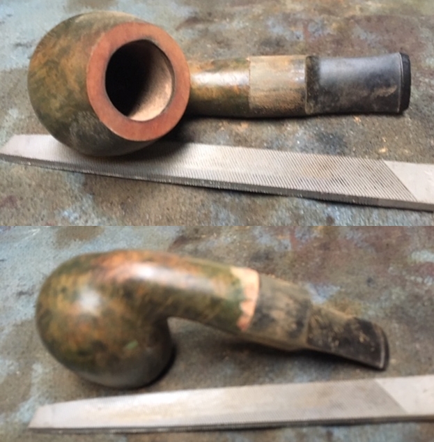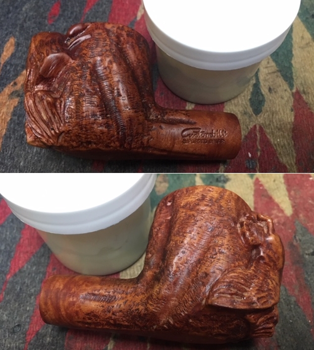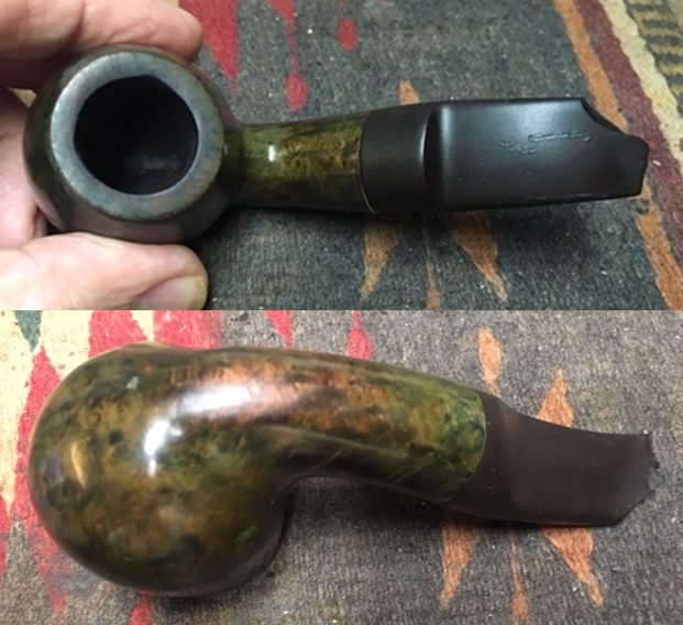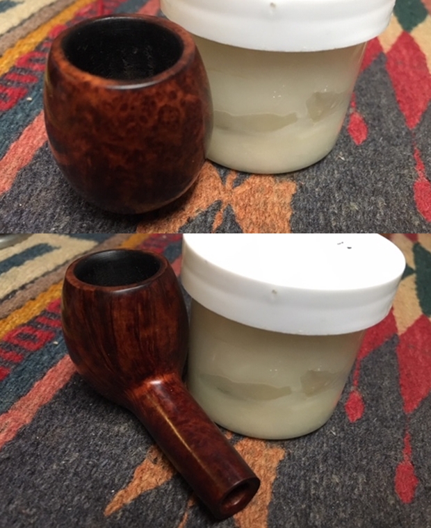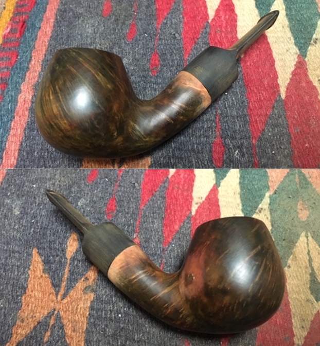 Jeff took a photo of the pipe with each of the stems in place in the shank. The top one is a very nice amber stem and the lower one is the pipe with a nice horn stem.