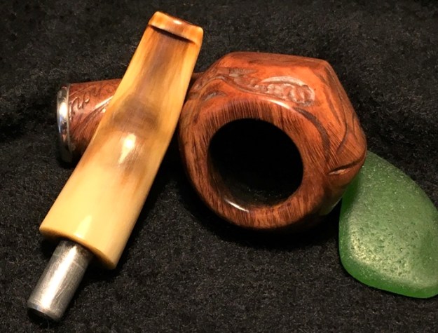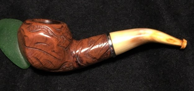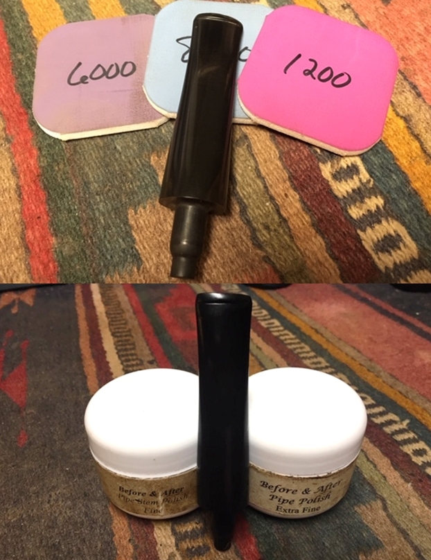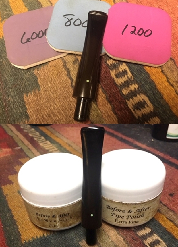 I polished the horn stem with micromesh sanding pads – wet sanding it with 1500-12000 grit pads and wiping it down with some Obsidian Oil after each pad. I repeated that with the amber stem as well. I polished it with 1500-12000 grit pads. I wiped it down with Obsidian Oil after each pad. I finished polishing it with Before & After Pipe Polish – Fine and Extra Fine and rubbing it down with a final coat of Obsidian Oil. I hand buffed it with a microfiber cloth.