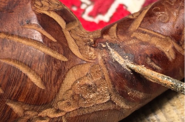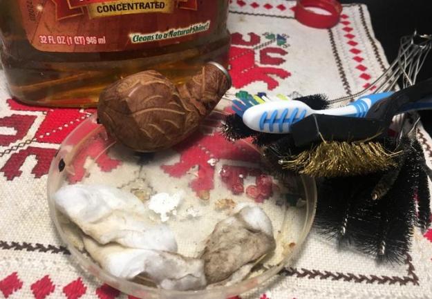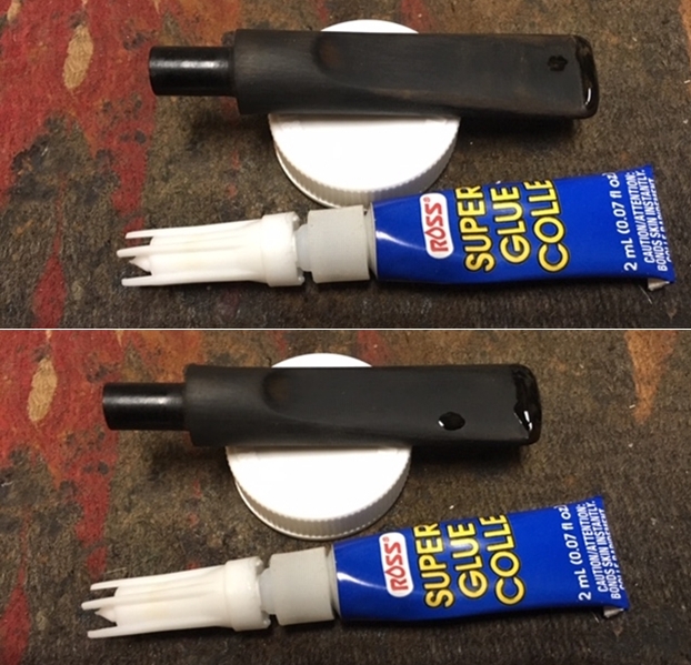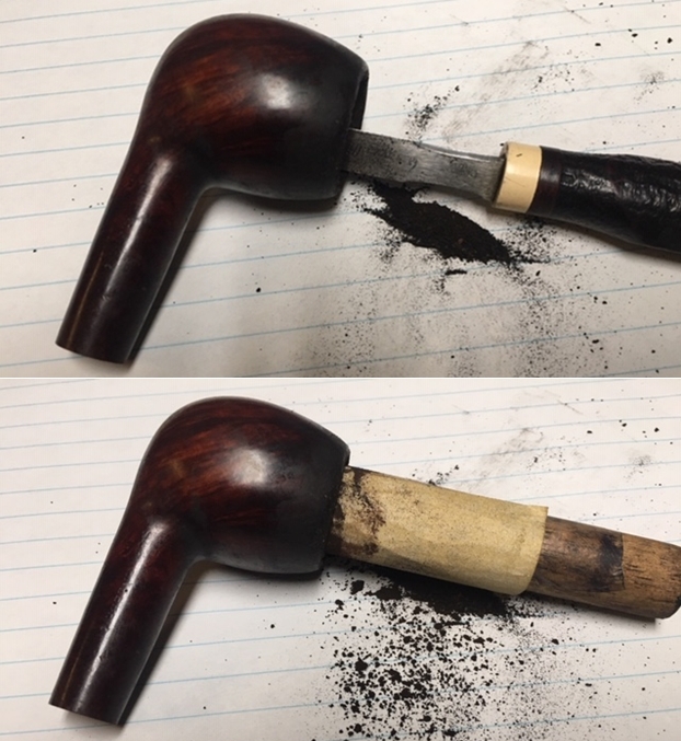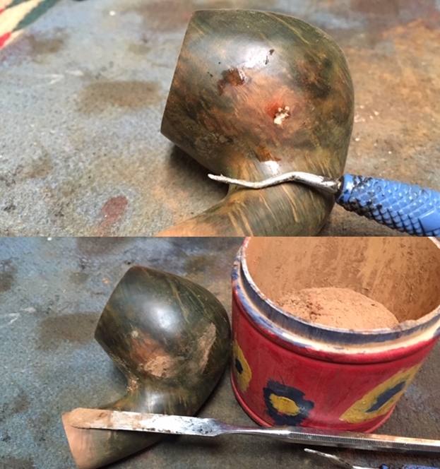 I set the stems aside and turned my attention to the bowl. I used a dental pick to remove the large fill on the left side of the bowl. I cleaned it up with alcohol on a cotton swab to remove the dust and debris from the crevice. I used clear super glue and briar dust to fill in the cleaned out hole in the bowl side and clear super glue to fill in the cuts and nicks on the rim top.