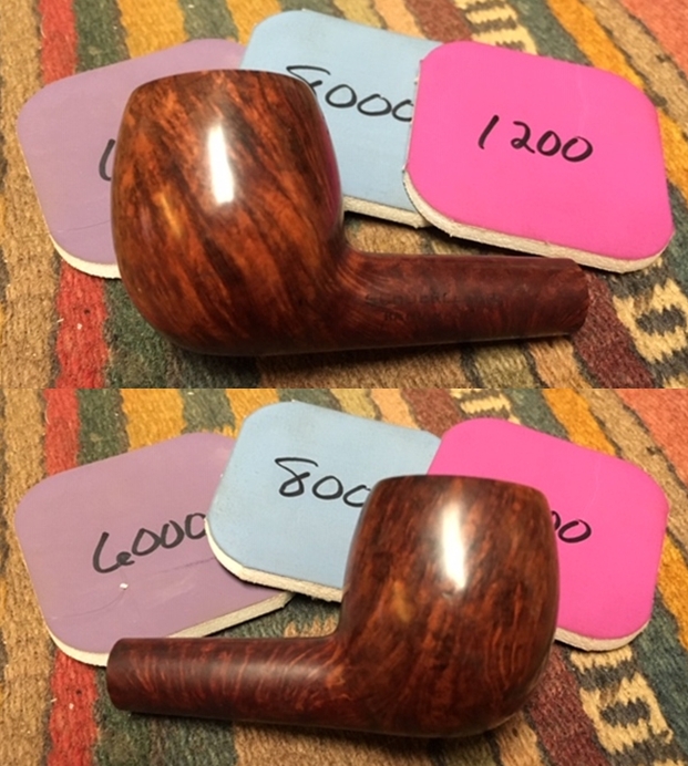 The dimensions of the same pipe with the amber stem are Length: 5 ½ inches, Height: 1 7/8 inches, Outside diameter of the bowl: 1 1/4 inches, Chamber diameter: ¾ of an inch. This is an interesting piece of GBD history having been made only for a short time from 1952 onward. It is mentioned in the Oppenheimer 1950 Catalogue and it clearly states that it did not come out for sale until 1952. The horn and amber stems could well be a re-introduction of older stem materials when vulcanite was scarce in post war Europe. The push style bone tenon rather than a threaded older style bone tenon also makes this very feasible. However you view it I have to say that is a beautiful pipe with options for each smoke that will give a very unique experience each in their own right. Thanks for taking time to work through the whole blog. It was a pleasure to work on. Sorry for the length!
