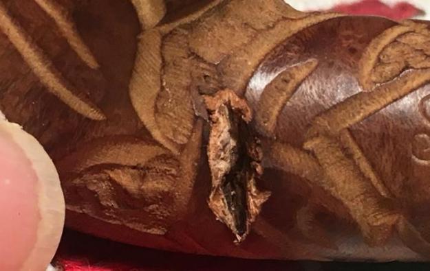 The next photo is a close up of the fill on the left side. It is a bit shrunken but still and ugly pink putty.