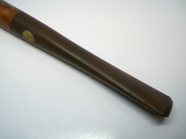 I reamed the slight cake from the bowl, and used a worn piece of Scotch-brite to remove the bowl top build-up. I diminished the scorch marks with some 2000 grit wet paper, taking care not to alter the bowl top shape. A few light marks remained, a fitting testament to the original owner. The bowl was then buffed lightly with White Diamond and several coats of Carnuba wax.
