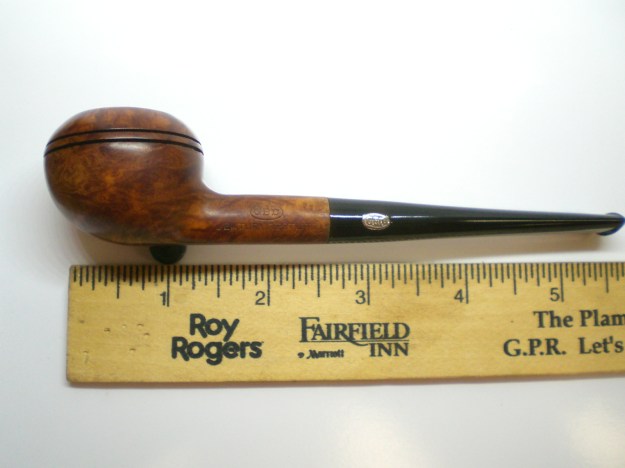 As I wrote on my previous Century related blog entry, the origin of that finish is a bit mysterious. Mike Hagley tells me that he has catalogs with the Century finish, but I’ve never personally seen one featured in any of the scanned catalogs that I have. Pipepedia says it was made to celebrate the 100th year of GBD, so a 1950’s purchase makes sense. Even more of a mystery is the “Restlite” stamp on this pipe The few Restlite stamps that I found were also in this shape 11, which is pretty rare by my experience. It is nearly identical to the Peterson 411 shape, which was known as the Bullcap. I found absolutely nothing about the Restlite option (as it appears to be). Mike remembers it being advertised as smaller and lighter and indeed, this pipe only weighs 29 grams.