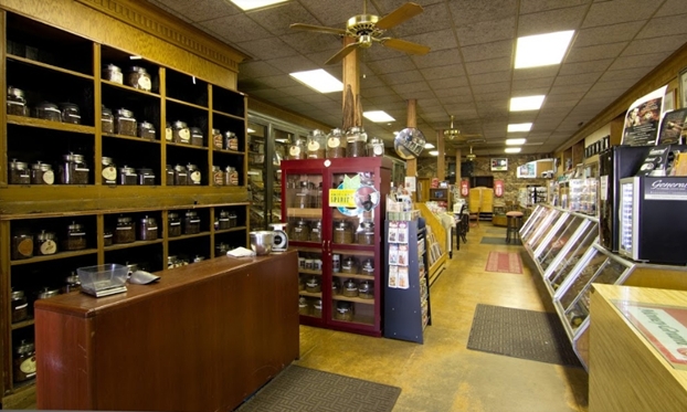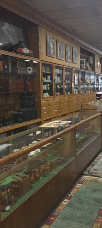 The shop itself was an older two story brick building with a false front on a busy Salt Lake street. It was a hot day and the shop door was open inviting folks to enter. It was a long shop with the walls lined on both sides and what looked like a smoking lounge in the back of the shop. Come on into the shop with me.