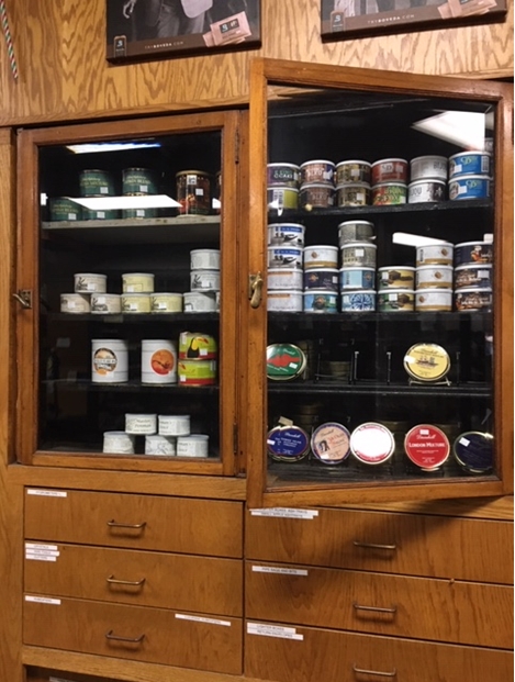 From the corner I looked back up the pipe cases past the humidor on shelves on the wall to the cabinet on the wall where the tobacco tins were displayed. I walked up the aisle to that place in the store – really mid-way between the front and rear of the shop. It took a while to get the disinterested shopkeep to come over and open the cupboard so I could have a look and he more or less put the tins I was interested in on the counter and walked away. The selection was quite large for a shop this size. There were a lot of Cornell & Diehl blends, a few Royal Vintage and Nording Hunter Blends both made by Mclellands, some Hearth and Home blends, some Davidoff blends and few Dunhill tins. All were priced pretty high but for the ones that were no longer in production the price was still lower than can be found online. I picked up four tins of tobacco from the shop before leaving.