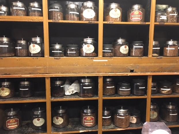 I walked back to the front of the store with my choices of tobacco and set them on the counter by the cash register – once again no comment from the shopkeep – an older man who seemed thoroughly disinterested in engaging us as customers. I turned to the left side of the store where the bulk tobaccos and cigarette shag tobaccos were displayed. There was nothing special there – just the usual bulk blends with shop names. Most of them came from Peter Stokkebye. There were some Dunhill knock offs but nothing that called my name so I took the photos and walked away.