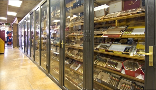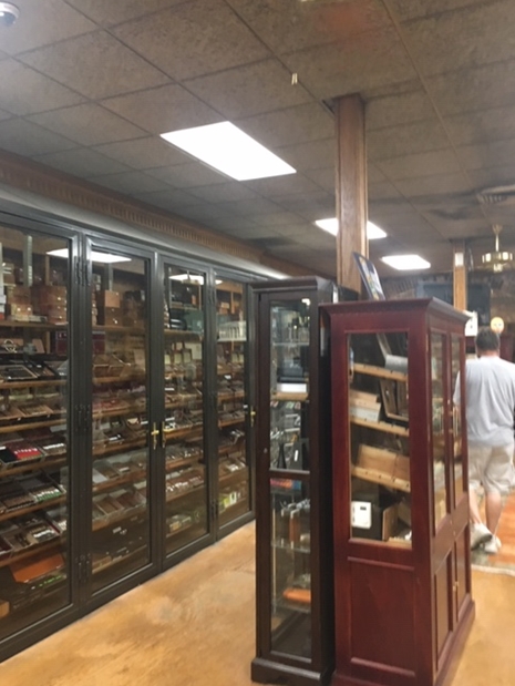 Looking up the left side of the shop the wall is lined with cigar humidors. The first photo shows the wall looking toward the back of the shop. The second one shows the wall looking back toward to front.