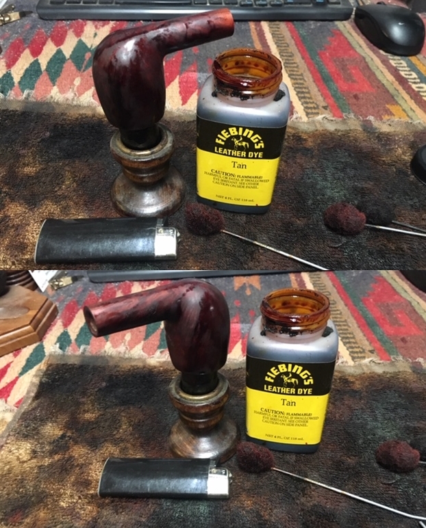To remedy this, I use an Italian made dye stick labeled, Noce Medio (Medium Night) that does a great job blending the area with the stummel.